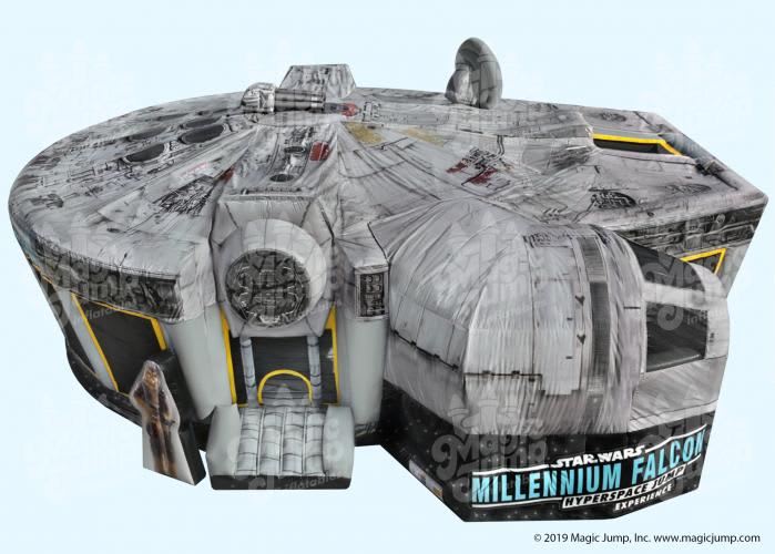 Magic Jump's official STAR WARS Millennium Falcon Hyperspace Jump Experience is the most unique inflatable attraction in the galaxy -- and it’s unlike any playland, combo unit or obstacle course ever seen before. It’s an inflatable version of the Millennium Falcon, the legendary spaceship in Star Wars made famous by Han Solo and Chewbacca for its many adventures…and for famously making the Kessel Run in less than 12 parsecs.